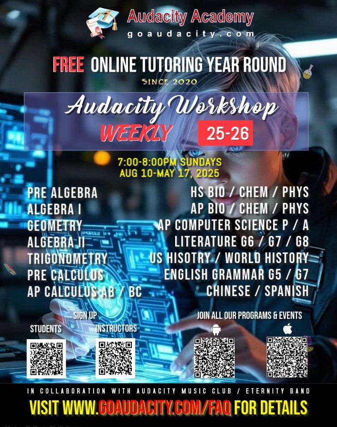 Audacity Academy is a student club at James Logan High School, Union City, CA. Our instructors, however, are honor students from several Bay Area high schools.