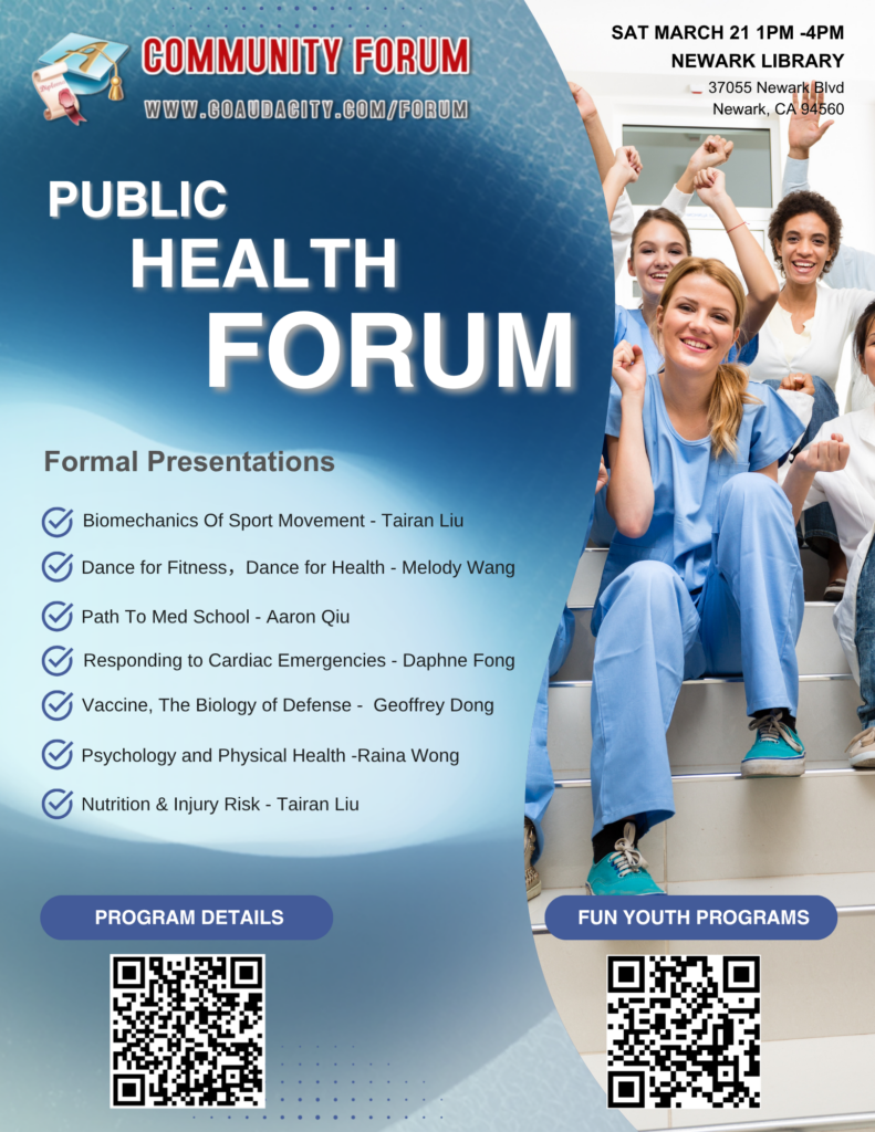 Youth Public Health Forum is a long term volunteer project, in which high school students working towards public health majors will conduct research on health related topics under the guidance of public health professionals and make monthly formal presentations at public libraries.